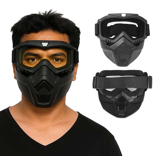 A diferencia de los protectores convencionales que se empañan o se deslizan, esta máscara combina lentes de policarbonato de alta definición, espuma de sellado perimetral y una correa antideslizante ultraajustable que se adapta al rostro y se mantiene firme durante toda la jornada.